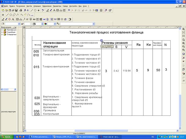 Рис.7.4. Перечень деталей класса «фланец»