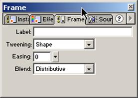 ü Выделите первый ключевой кадр и установите анимацию формы (вызовите панель Window>Panels>Frame и Tweening установите в Shape)