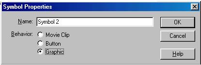 ü В диалоговом окне Window>Library выберите вновь созданный символ и щелкните на пункте меню Options>Properties - здесь можно переименовать символ и выбрать его тип - Graphics.