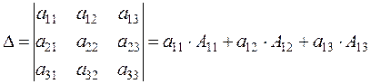 Определитель равен сумме произведений элементов некоторого ряда на соответствующие им алгебраические дополнения: