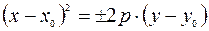 Òîãäà óðàâíåíèÿ ïàðàáîëû áóäóò èìåòü âèä:
