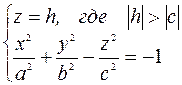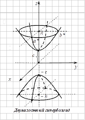 Двуполостный гиперболоид - это две чаши с вершинами в точках
