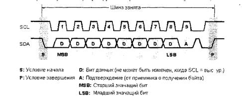 Рис. 7.12. Протокол передачи байта данных через шину I2C