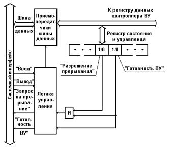 Рис. 3.11. Фрагмент блок-схемы контроллера ВУ с разрядом "Разрешение прерывания" в регистре состояния и управления