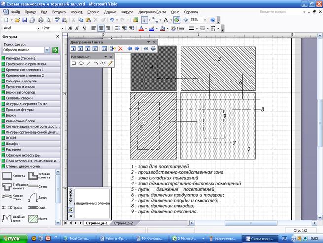 Задание 4. Разработать принципиальную схему взаимосвязи основных функциональных зон проектируемого магазина-кулинарии с обозначением путей движения основных технологических потоков.