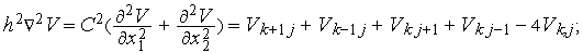 Здесь — значение в точке ; приняты одинаковые значения шагов по обеим координатам.