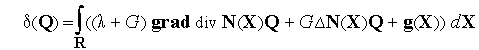 Здесь — дифференциальный оператор , применяемый ко всем элементам вектора , — вектор массовых и приложенных сил, отнесенных к конечному элементу. Невязка по области конечного элемента при замене на