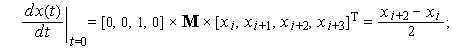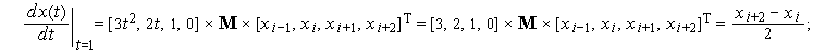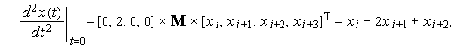 Покажем, что в точках сопряжения для первой и второй производных аппроксимирующего выражения выполняются условия непрерывности, что требуется по определению B-сплайна. Обозначим участок аппроксимирующего B-сплайна, соответствующий участку
