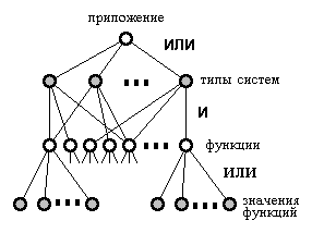 Любую морфологическую таблицу можно представить в виде дерева (рис. 1). На рисунке функции представлены вершинами И (темные кружки), значения функций — вершинами ИЛИ (светлые кружки). Очевидно, что таблица представляет множество однотипных объектов, поскольку все они характеризуются одним и тем же множеством функций.