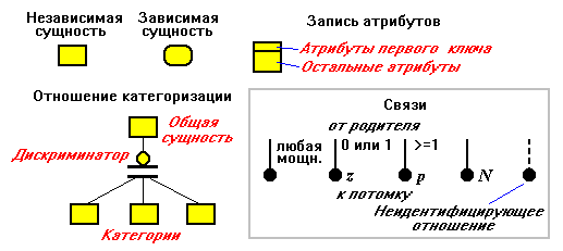 Рис. 1. Элементы языка IDEF1X