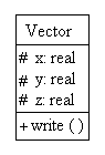 Для изображения классов ООП используют прямоугольники, которые разделяются на секции. В верхней секции записывают имя класса, в средней секции — атрибуты класса и в нижней секции — процедуры класса, как это сделано в примере на рис. 2. Знаки +, - или # ставится перед именем атрибута или метода, если элемент имеет статус соответственно public, private или protected.
