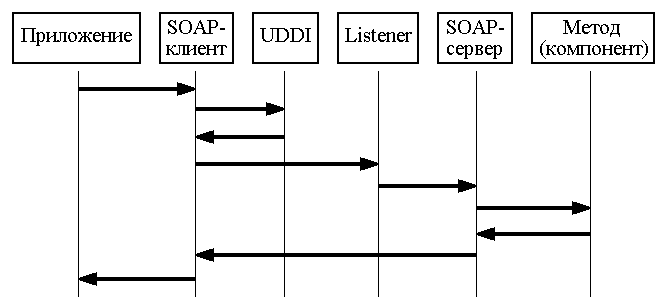 Механизм взаимодействия клиента и сервера в технологии SOAP можно представить в виде последовательности следующих процедур (рис. 2):