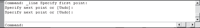 Окно командных строк обычно расположено над строкой состояния и служит для ввода команд и вывода подсказок и сообщений AutoCAD. По умолчанию окно команд закреплено и равно по ширине окну AutoCAD (рис. 3.9)