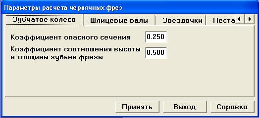 Рисунок 4. Окно "Параметры расчета червячных фрез"