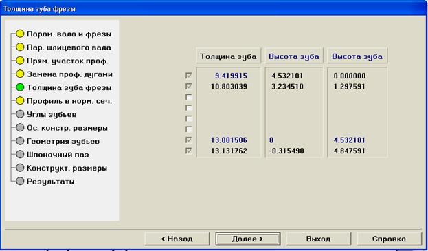 16. После получения результата толщины зуба нажмите кнопку Далее.