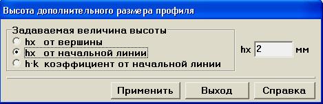 15. В окне Высота дополнительного размера профиля укажите величину высоты hx от начальной линии - 2 мм.