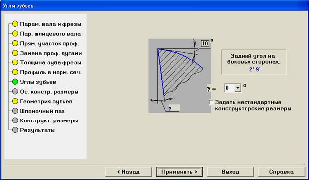 18. В окне Углы зубьев нажмите кнопку Применить.