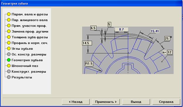 19. В окне Геометрия зубьев задайте следующие параметры: