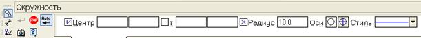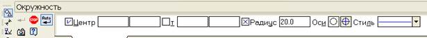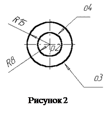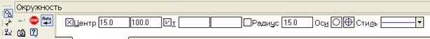 4. Коло о3 (рисунок 2) з осьовими лініями і радіусом 15 мм будується з координатами Х=15 Y=100 відносно локальної СК. Координати задаються в полях Центр окружности в панелі властивостей.
