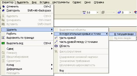 10. Після виконання побудов допоміжні прямі видалити за допомогою команди Редактор → Удалить → Вспомогательные кривые и точки →