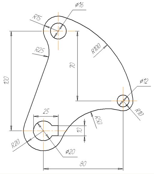 Побудова округлення кіл о1 і о5 радіусом 50 мм будується аналогічно попередньому.