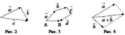 - свободные, совместив начала их, получим правило параллелограмма для суммы двух векторов (см. рис.4).