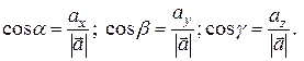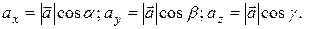 и координатными осями α, β, γ. Косинусы этих углов называются направляющими косинусами вектора.