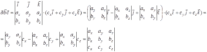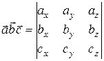 Таким образом, смешанное произведение численно равно определителю, составленному из координат векторов, т.е.