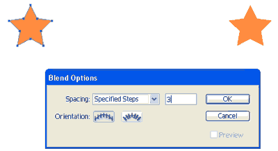 Выскочит окно настроек перехода (Blend Options). Выберите «Заданное число шагов» (Specified Steps) и введите в окошко цифру 3.