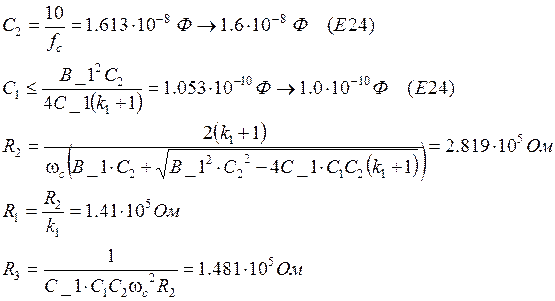2. Расчет элементов многозвенного фильтра и выбор элементов из стандартных рядов.