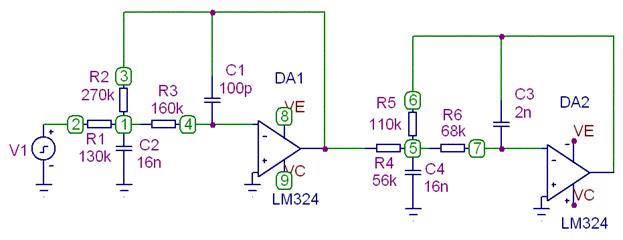 Схема ФНЧ состоит из двух каскадно соединенных звеньев: