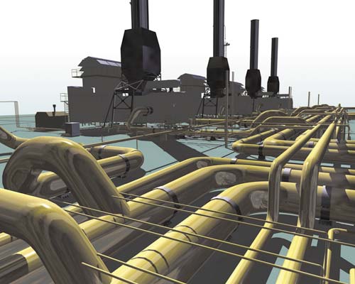 Фрагменты трехмерной модели объекта нефтегазового комплекса на этапе проектирования