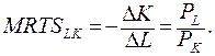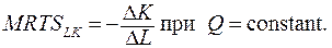 Рис. 5.5. Изменение MRTSL,K при движении вниз по изокванте