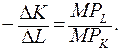 Поскольку замещение капитала трудом компенсируется извлечением большего предельного продукта от единицы труда, то справедливо равенство соотношения: