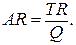 Средний доход (average return – AR) отражает выручку в расчете на единицу реализованной продукции. Его величина определяется как частное от деления общего дохода на объем реализованной продукции