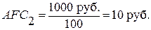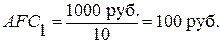 Средние постоянные издержки (AFC) характеризуют затраты постоянного ресурса, с которыми в среднем производится единица продукции. Они уменьшаются при увеличении объема производства. Например, годовая сумма амортизационных отчислений оборудования равна 1000 руб. При объеме выпускаемой на нем продукции: