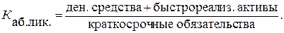- текущей ликвидности отражает какая часть текущих обязательств может быть погашена не только за счет денежных средств, но и поступлений от дебиторов;