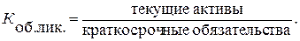 - общей ликвидности, показывающий в какой степени текущие активы покрывают краткосрочные обязательства.