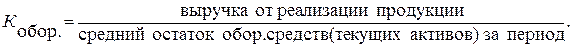 Коэффициент оборачиваемости показывает количество оборотов совершаемыми оборотными фондами за определенный период времени. Коэффициент определяется по следующей формуле: