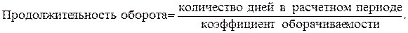 Продолжительность одного оборота оборотных средств за период рассчитывается в днях и определяется следующей формулой: