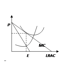 Долгосрочное равновесие монополистического конкурента обозначено на графике точкой Е. Эта точка лежит на кривой LAC, т.е. фирма, как и при совершенной конкуренции, обнаруживает долгосрочную тенденцию к получению нулевой экономической прибыли. Вместе с тем следует заметить, что если в условиях совершенной конкуренции цена равняется минимуму долгосрочных средних издержек P=LACmin, т.е. имеет место производственная эффективность (см. 7.6), то при монополистической конкуренции P>LACmin, что свидетельствует о неполной загрузке производственных мощностей. Избыточные мощности являются платой за дифференциацию продукта. Однако, чем сильнее дифференциация, тем в большей степени удовлетворяются разнообразные вкусы потребителей.