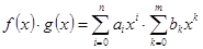 Умножение числа на полином, равно как и умножение полинома на число – это операция, воздействующая на коэффициенты полинома, и соответствует умножению числа на вектор (вектора на скаляр), то есть: