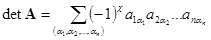 где сумма распространена на всевозможные перестановки (a1, a2, …, an) элементов 1, 2, …, n и, следовательно, содержит n! слагаемых, причем c=0, если перестановка четная, и c=l, если перестановка нечетная.