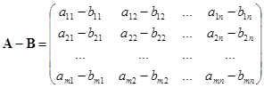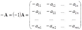 Унарный минус – операция, из матрицы составляющей противоположную матрицу того же типа: .
