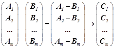 Дружественная функция вычитания матриц принимает два параметра – матрицы одинакового типа (одинаковой размерности), а матрицу-разность возвращает как результат. Разность матриц определяется аналогично сумме: