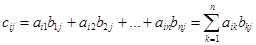 Пусть и – матрицы типов соответственно mxn и pxq. Если число столбцов матрицы А равно числу строк матрицы B, т. е. n=p, то для этих матриц определена матрица С типа mxq, называемая их произведением: