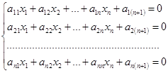 Левую часть каждого уравнения системы можно рассматривать как скалярное произведение двух векторов: и . При такой постановке решение системы сводится к построению вектора, ортогонального к каждому вектору Ai. Добавим к системе векторов Ai линейно независимый от них вектор An+1=(0, 0, …, 0, 1). В векторном пространстве размерности n+1 будем строить такой его ортонормированный базис B1, B2, …, Bn+1, чтобы при любом k=1, 2, …, n+1 векторы B1, B2, …, Bk образовывали ортонормированный базис подпространства Pk, порожденного рассматриваемыми векторами A1, A2, …, Ak. Для этого достаточно строить в подпространстве Pk некоторый ортогональный базис U1, U2, …, Uk, а затем нормировать его.