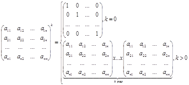 Для квадратных матриц мы можем определить такую операцию, как возведение матрицы в целую степень (отрицательные степени при этом не рассматриваются) по следующему закону: