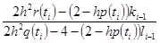При i=1 уравнение f(t0)=k0–l0f(t1) приводится к виду f(t1)=k1–l1f(t2), а для произвольного значения i получим f(ti)=ki–lif(ti+1). Пограничные коэффициенты ki, li вычисляются по рекуррентным формулам: