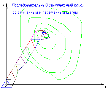 Метод был предложен в 1962 году Спиндлеем, Херстом и Химсуорсом [см. А.П. Дамбраускас. Cимплексный поиск. – М.: Энергия, 1979]. Оригинальность метода состоит в том, что движение к оптимуму в многомерном пространстве независимых переменных осуществляется последовательным отражением вершин симплекса. В k-мерном евклидовом пространстве симплексом называют фигуру, образованную k+1 точками (вершинами), не принадлежащими одновременно ни одному пространству меньшей размерности. В одномерном пространстве симплекс есть отрезок прямой, в двумерном – треугольник, в трёхмерном – тетраэдр и т. д. Симплекс называется регулярным, если расстояния между его вершинами равны. В ПСМ используются регулярные симплексы.